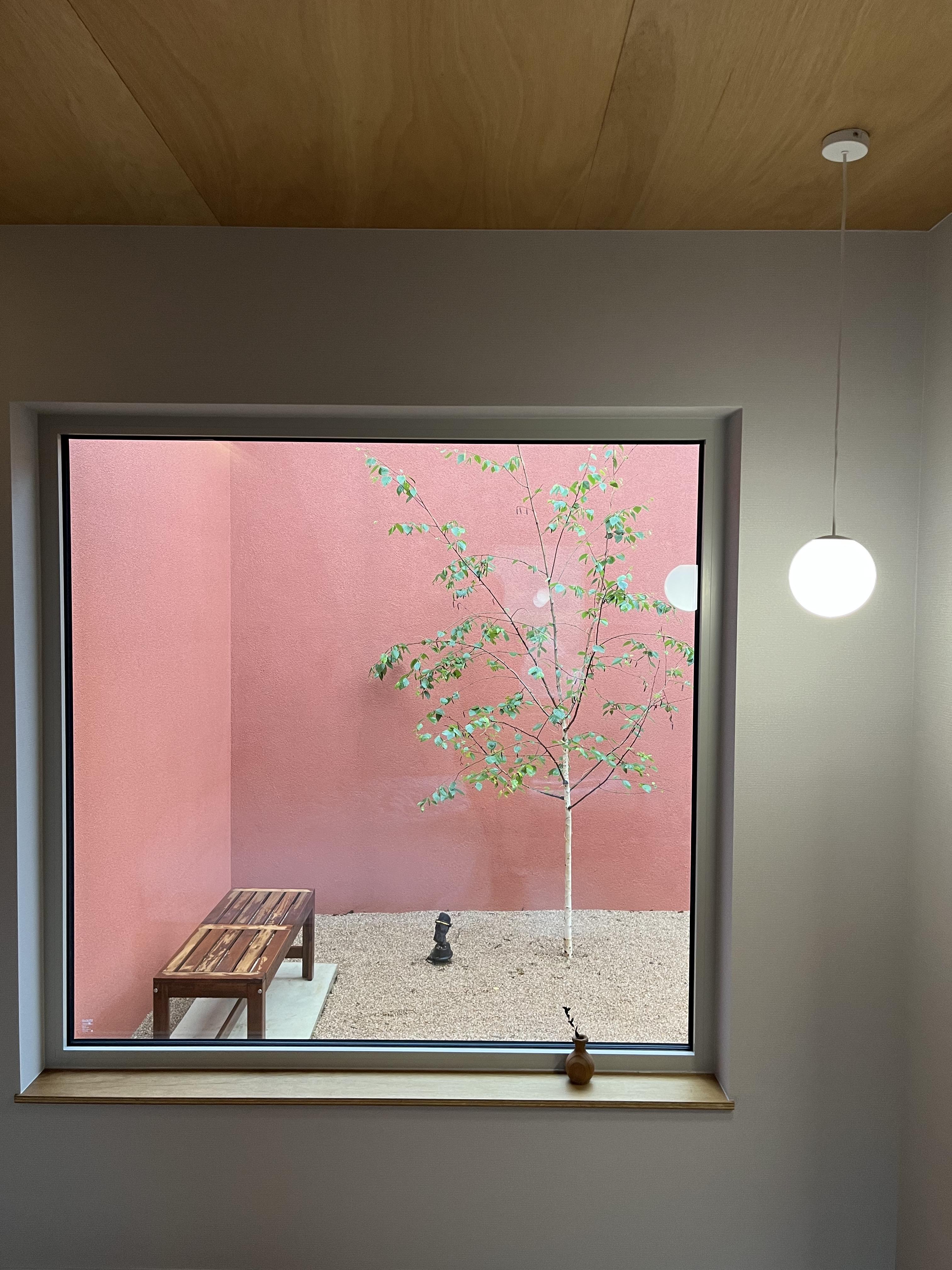 특히 침실 창 너머의 안뜰뷰가 좋았다. 침대에 편안하게 기대어 이 공간을 바라보는 것만으로도 편안했다. 나무 벤치와 가녀리지만 꼿꼿하게 서있는 나무는 다정한 친구 같고, 침실 내 원형 펜던트가 창문에 반사되는 빛은 마치 작은달을 연상하게 한다. 함께한 이와 침실과 정원에 각각 따로도 있어보고, 함께 침실에서 정원을 감상하기도, 함께 정원에서 오롯이 정원을 느껴볼 수 있다. 한 공간에서 다양한 모습으로 서로를 담아보는 특별함이 있다. 오직, 우리끼리 말이다.