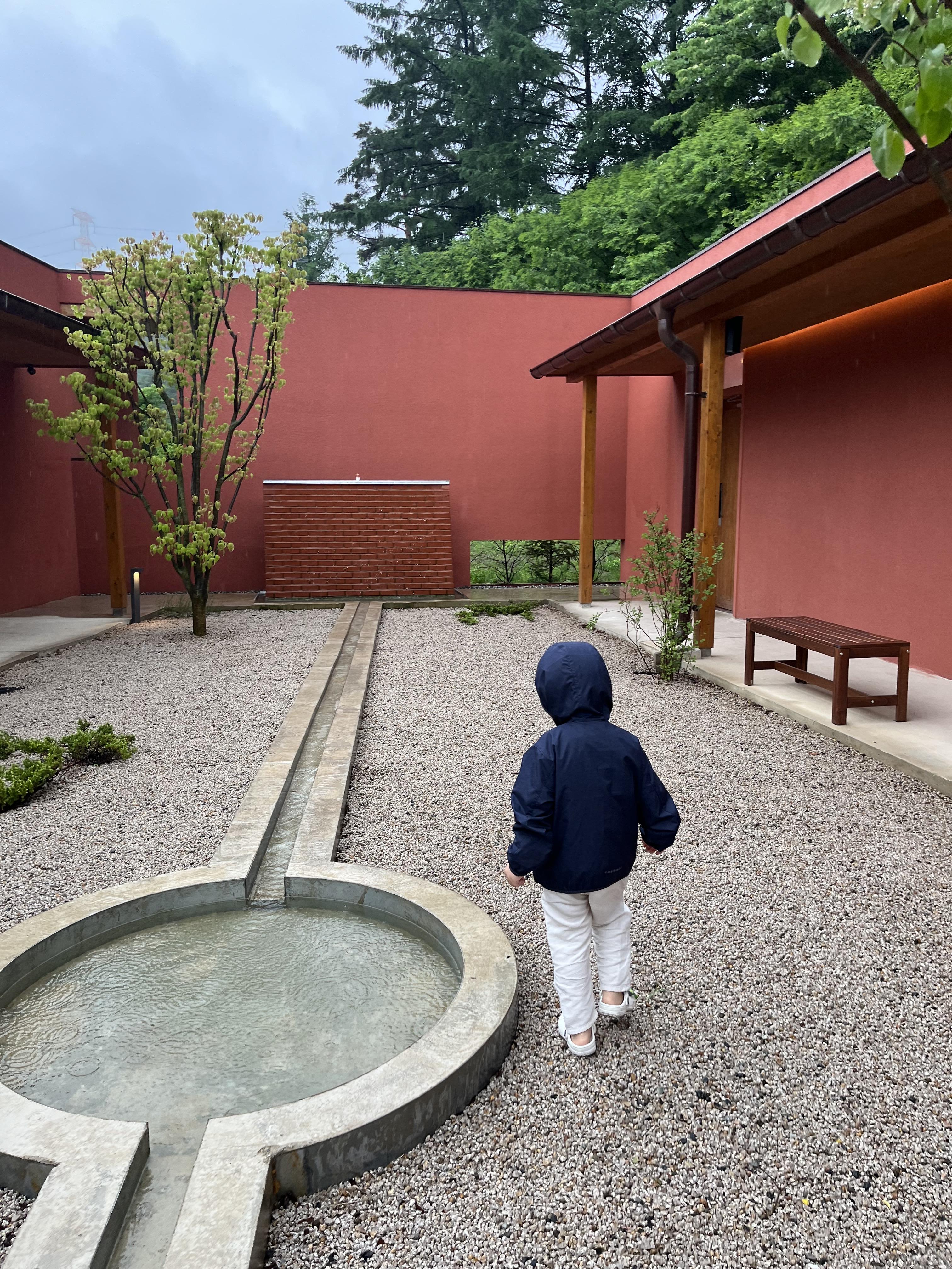 객실마다 프라이빗 정원이 있는데, 그 모든 객실을 하나의 공간으로 모아주는 중정이 또 있다. 일월일지, 이 곳에서 모두는 매우 사적인 시간을 보내겠지만 결국 우리들은, 우리 서로와 그리고 자연과 연결되어 공존하고 있음을 이야기하고 있는 듯했다. 중정의 끝에는 낮은 벽돌로 꾸민 작은 폭포가 있었다. 물방울이 한 방울씩 톡톡 떨어지는 소박함이 이 공간을 더욱 특별하게 만들어준다.